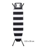 Funda 100% algodón, estructura perforada de una sola pieza, especial vapor. Soporte con micropartículas metálicas, resistente a altas temperaturas. Regulable en altura con bloqueo de seguridad, 11 posiciones.