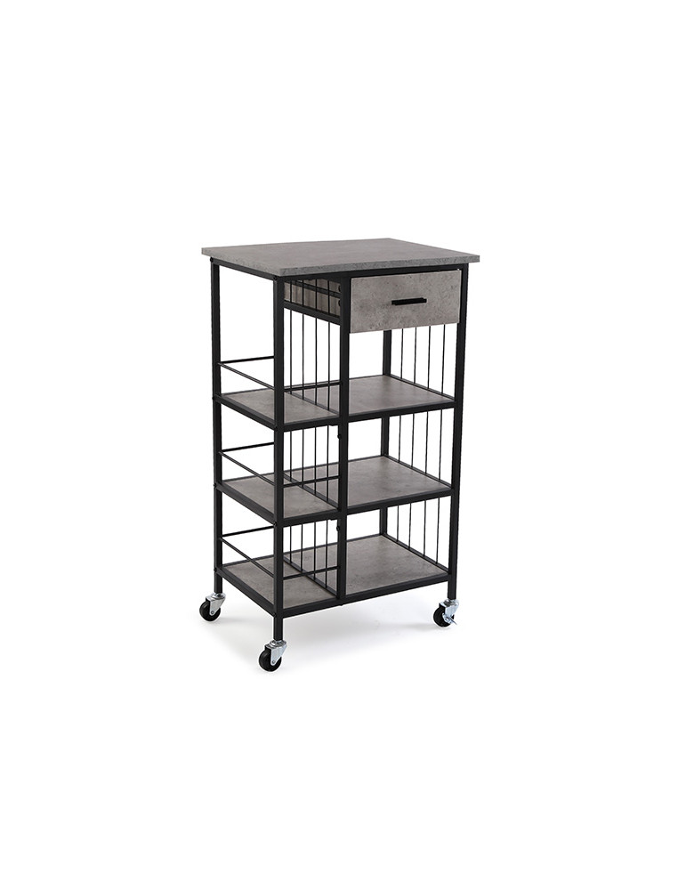 CARRO COCINA GRIS 3 baldas + 1 cajón. Con ruedas. Madera mdf. Requiere montaje