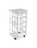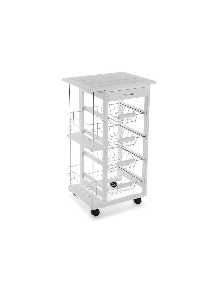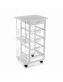 CARRO COCINA BLANCO 4 Cestas + 2 baldas + 1 cajón. Con ruedas. Madera mdf y pino. Requiere montaje. 84x37x47 cm.