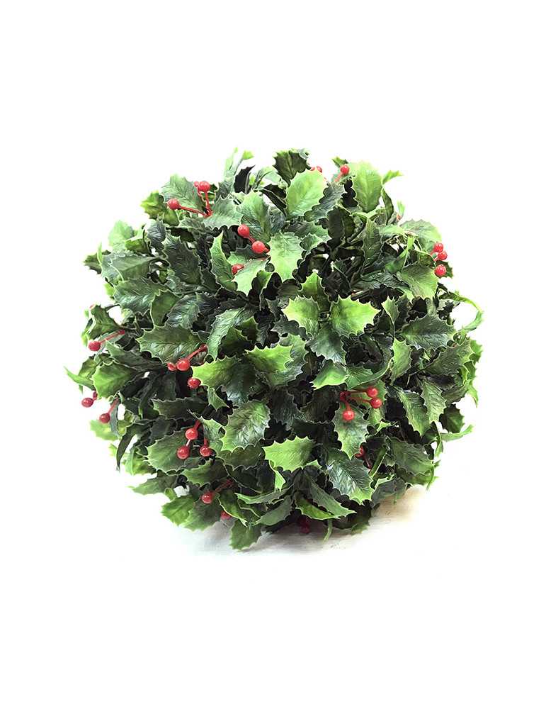 Planta decorativa artificial, imitación de la variedad acebo, fabricada en plástico, con acabado en color verde. Ideal para utilizar en interior y exterior y dar un estilo clásico a tu hogar. 25 cm.