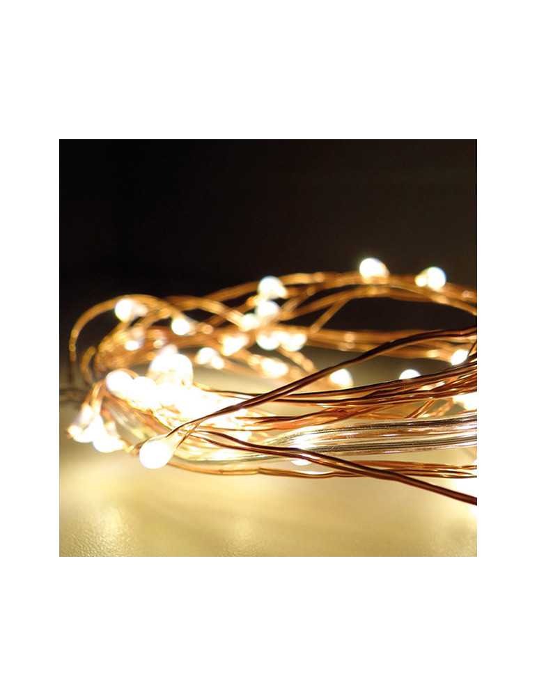 CABLE ALAMBRE COBRE LUZ BLANCO CLAIDO PILAS 3xAA NO INCLUIDAS IP20 5cm ENTRE BOMBILLAS LED, CABLE ALIMENTACIÓN 10cm. DISTANCIA ENTRE LA PRIMERA BOMBILLA Y LA ULTIMA 195cm. LARGO TOTAL: 2,05m
