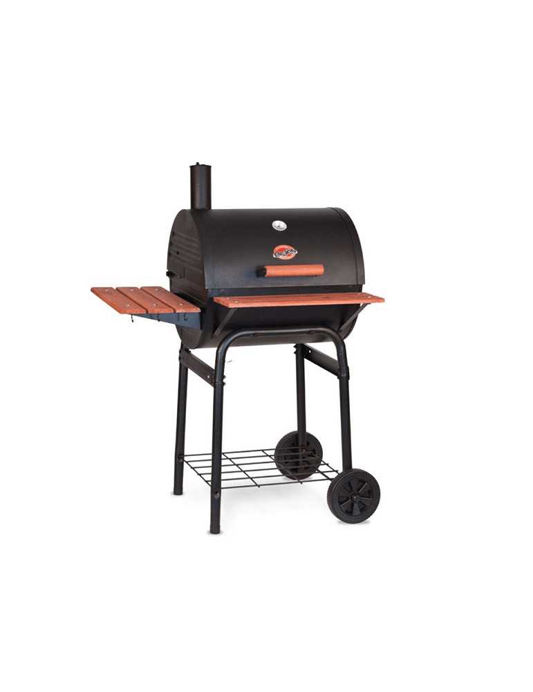 Carro de acero tubular. Parrilla ajustable 3 alturas (51 x 50 cm.), 0,28 m2 antiadherente. Fácil limpieza. Rejilla para mantener la comida caliente. Chimenea. Termómetro. Fácil montaje. Medida 88,9 x 73,7 x 127 cm. Peso 22,6 kg.