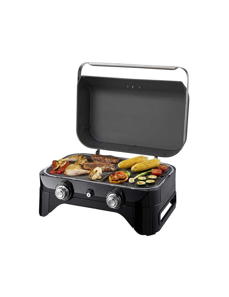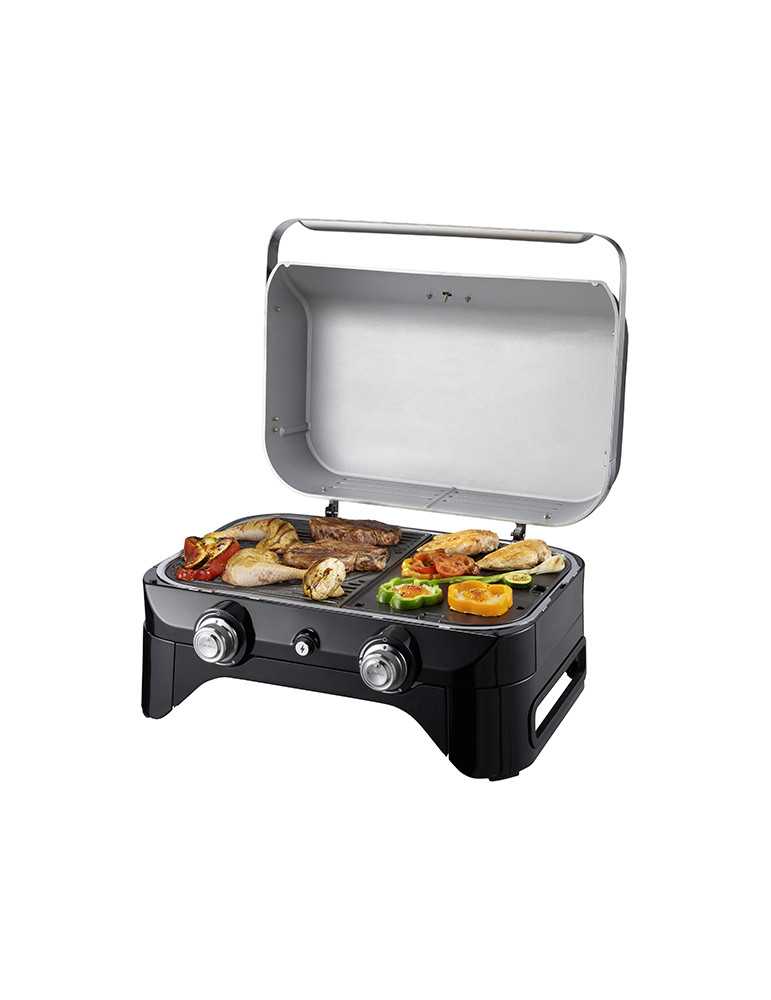 Potencia: 5.000 W. 2 Quemadores de acero aluminizado. Superficie de cocina 2.100 cm2. Plancha / Parrilla de hierro fundido esmaltado semibrillante. Temperatura homogénea gracias a Tecnología Even Temp®.