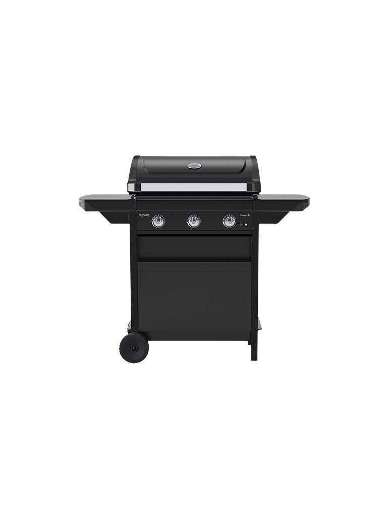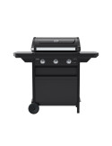 Potencia: 7,500W. 3 Quemadores de acero aluminizado. Superficie de cocina: 61 x 35 cm. Parrilla/ Parrilla de acero esmaltado. Encendido Piezo. Termómetro. 2 Mesa laterales plegables. Pantalla frontal con bandeja integrada y 2 ruedas grandes.