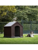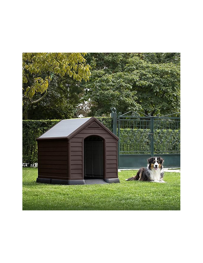CASETA DE PERRO MARRON Caseta de perro con suelo elevado, sistema de ventilación sin uniones en el techo. 99X95X99