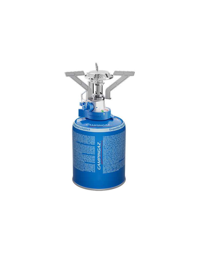 (para cartucho CV 470/CV 300). Potencia: 2900 W Peso: 240g. Soporte de 3 brazos plegables para sartén de 14,5cm Ø. Encendido piezo eléctrico. Consumo de gas: 210g/h Autonomía: > 1 h 10 con CV300 Plus > 2 h con CV470 Plus. Nueva Conexión Easy Clic® Co