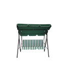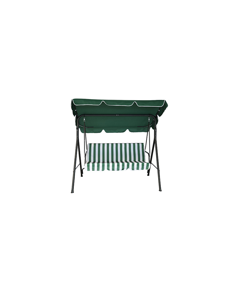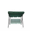 BALANCIN 3 PLAZAS VERDE/BLANCO Estructura de acero. Toldo de poliéster de 160 g. Cojin y respaldo PE Orford. Medidas 170 x 113 x 150 cm.