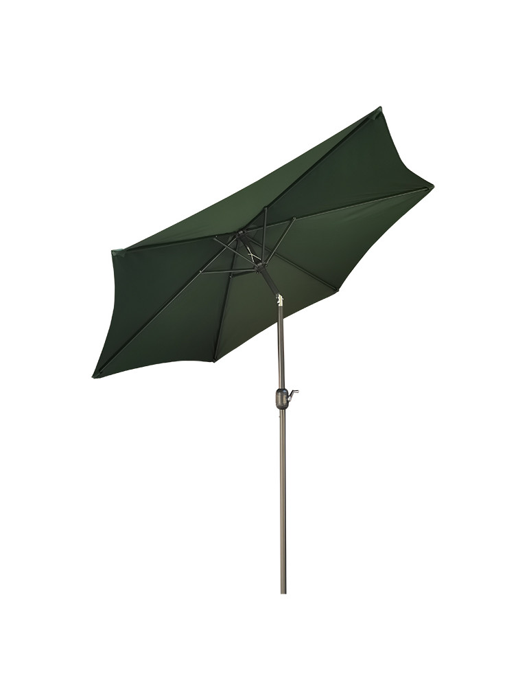 PARASOL ALUMINIO VERDE Mástil de 38 mm. Diámetro 2,5 m. Toldo de poliéster 160G. Abatible e inclinable. Color beige. Pie no incluido.