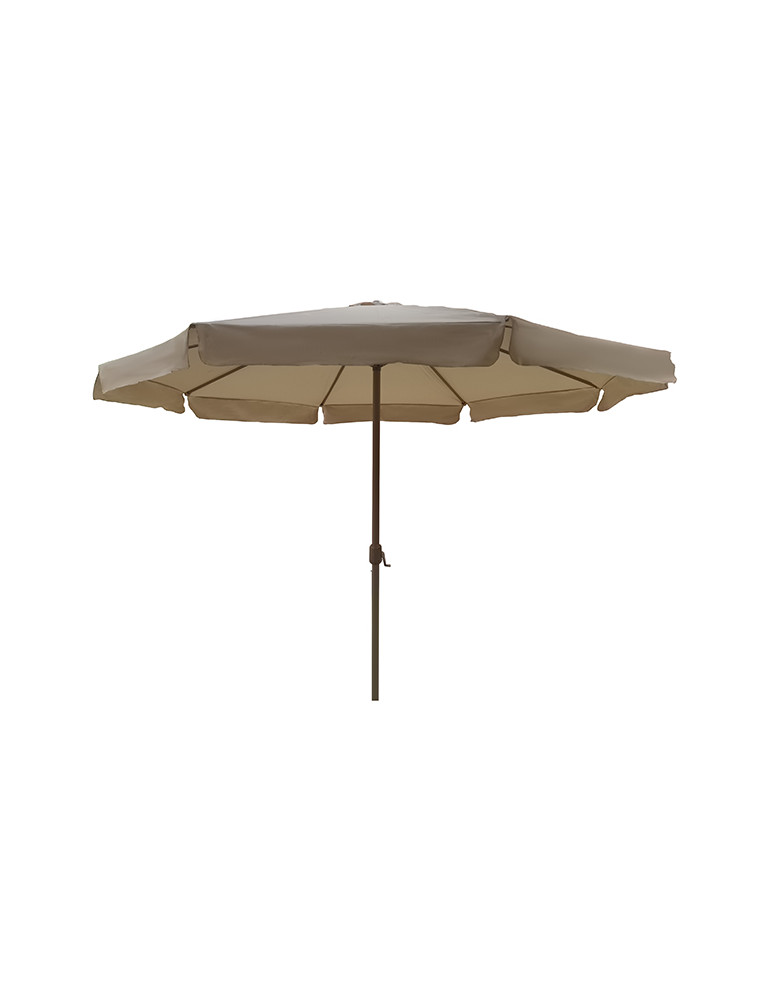 Mástil de 48 mm. Diámetro de 3,5 m. Toldo poliéster opacidad básica. Con manivela. Pie no incluido.