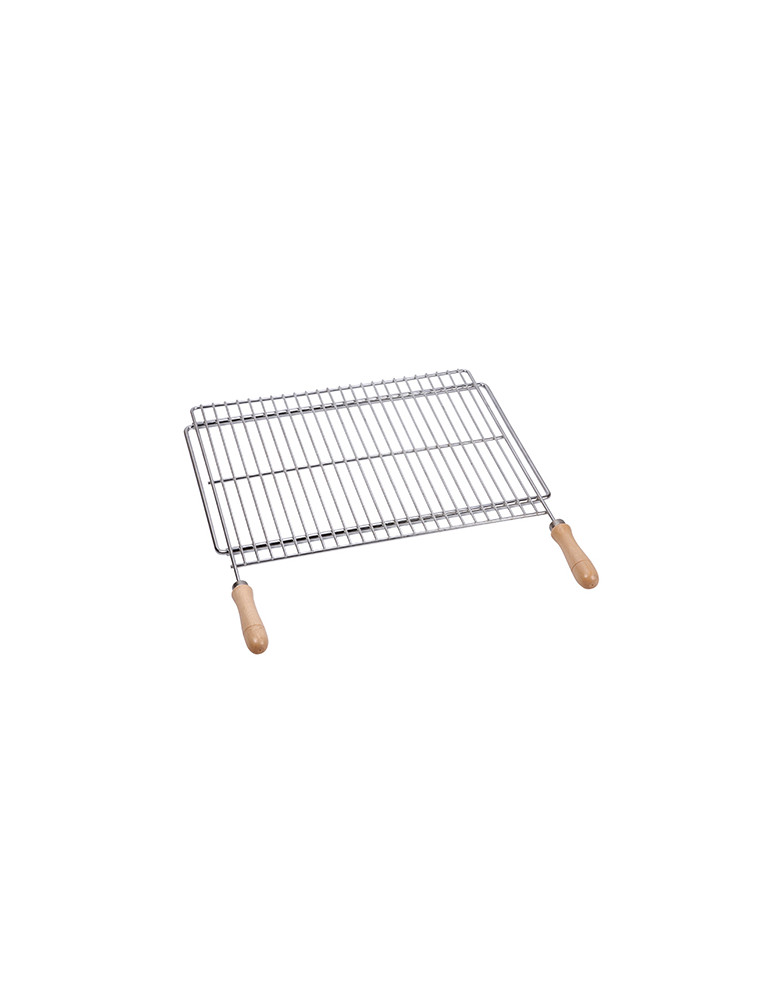 Fabricada en acero zincado, extensible que se adapta a cualquier medida de barbacoa. Mangos de madera y varillas reforzadas. 60 x 40 cm.