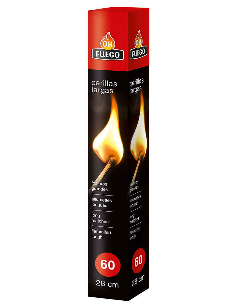 CAJA 60 UDS. 28 cm. 60 uds. Fabricadas con madera de pino. Ideales para un encendido seguro permitiendo llegar con facilidad a rincones de difícil acceso.