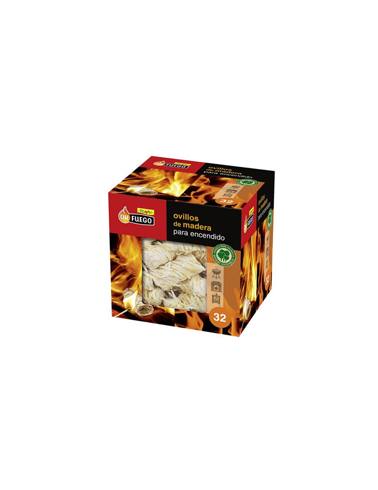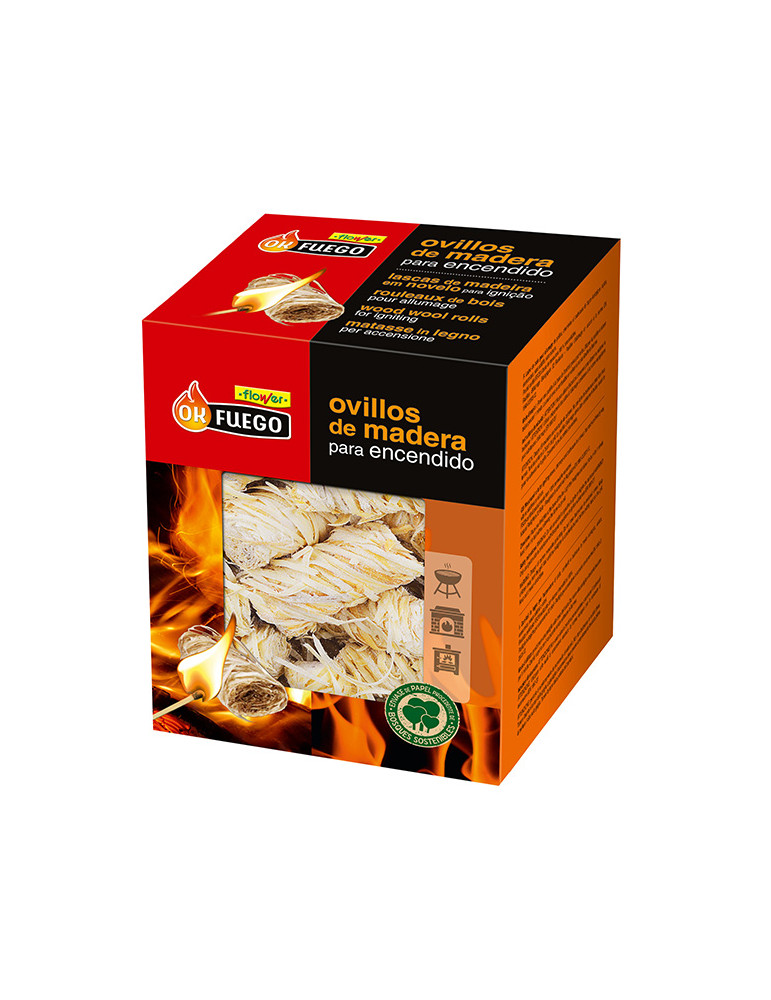 Encendedores ecológicos en forma de ovillos de madera para el encendido de estufas, chimeneas y barbacoas. Sin aditivos, ni olores. Producto certificado FSC® hecho de recursos 100 % renovables.
