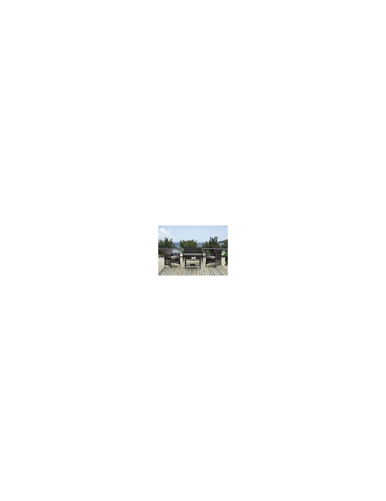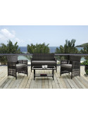 COJUNTO ratán Conjunto en ratán gris oscuro. Incluye cojines en gris claro. Sofá: 113 x 67 x 76 cm, 2 sillones: 61 x 67 x 76 cm y mesa: 82 x 49 x 40 cm.