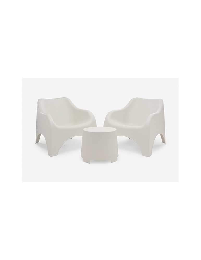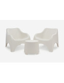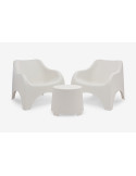 Dos butacas y mesa de café de resina en color blanco. Tanto para interior como para exterior. Butacas apilables