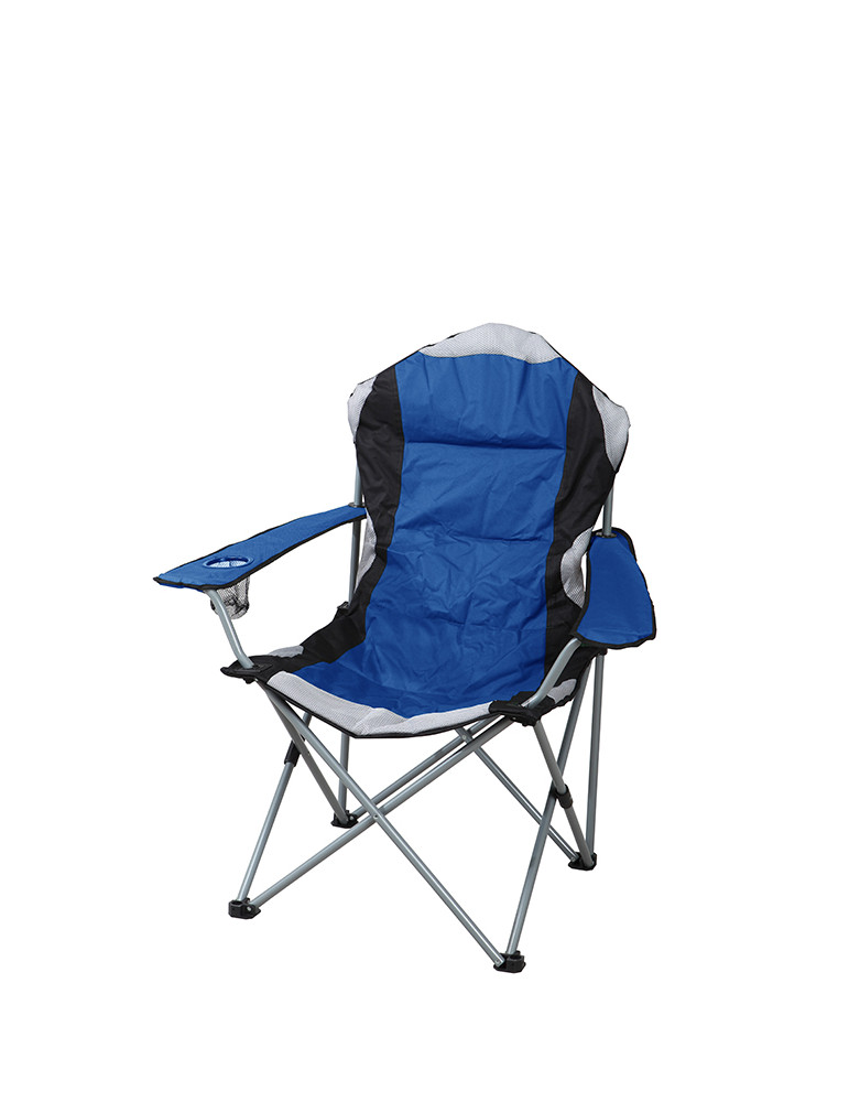 SILLA CAMPING CON REPOSABRAZOS Plegable. Fabricada en acero y polyester Azul. 95x95x110cm. Incluye bolsa de transporte