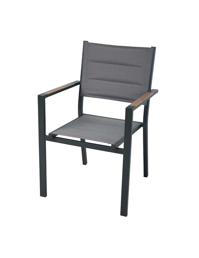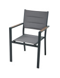 Sillon aluminio y textileno con detalle imitación madera en el reposabrazos. 56,5x57,5x87 cm