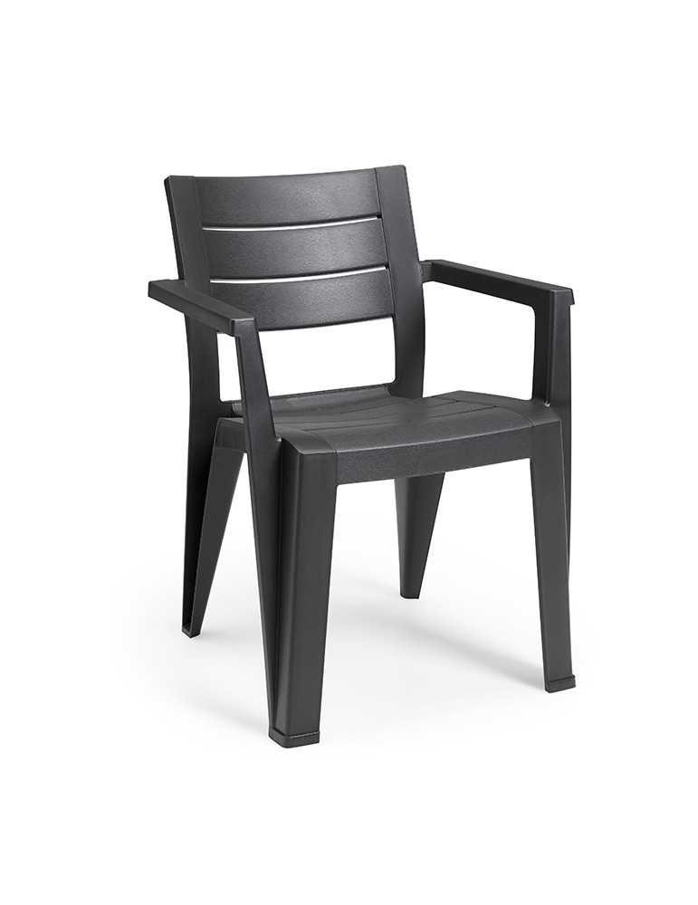Silla de jardín con reposabrazos de diseño moderno y elegante. Diseño resistente apto para uso interior y exterior. 58,5 x 61,5 x 79 cm. Color grafito.