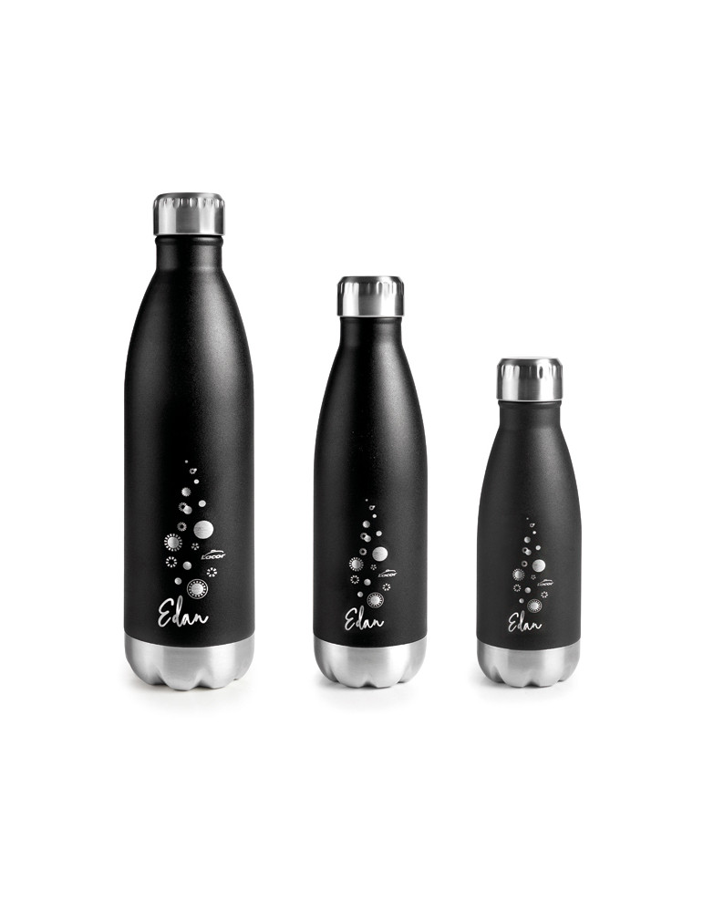 Fabricada en acero inoxidable de doble pared de aislamiento. No transmite el calor o el frío. Tapa hermética antiderrames. No transmite sabores ni olores. Mantiene las bebidas caliente hasta 12 h y las frías hasta 24 h. Colores negra o roja. 750 ml.