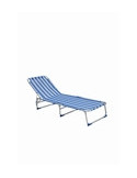 TUMBONA TARIFA Plegable. Aluminio anonizado y textileno. 188x57x28/66cm. Estampado de rayas blancas y azules.