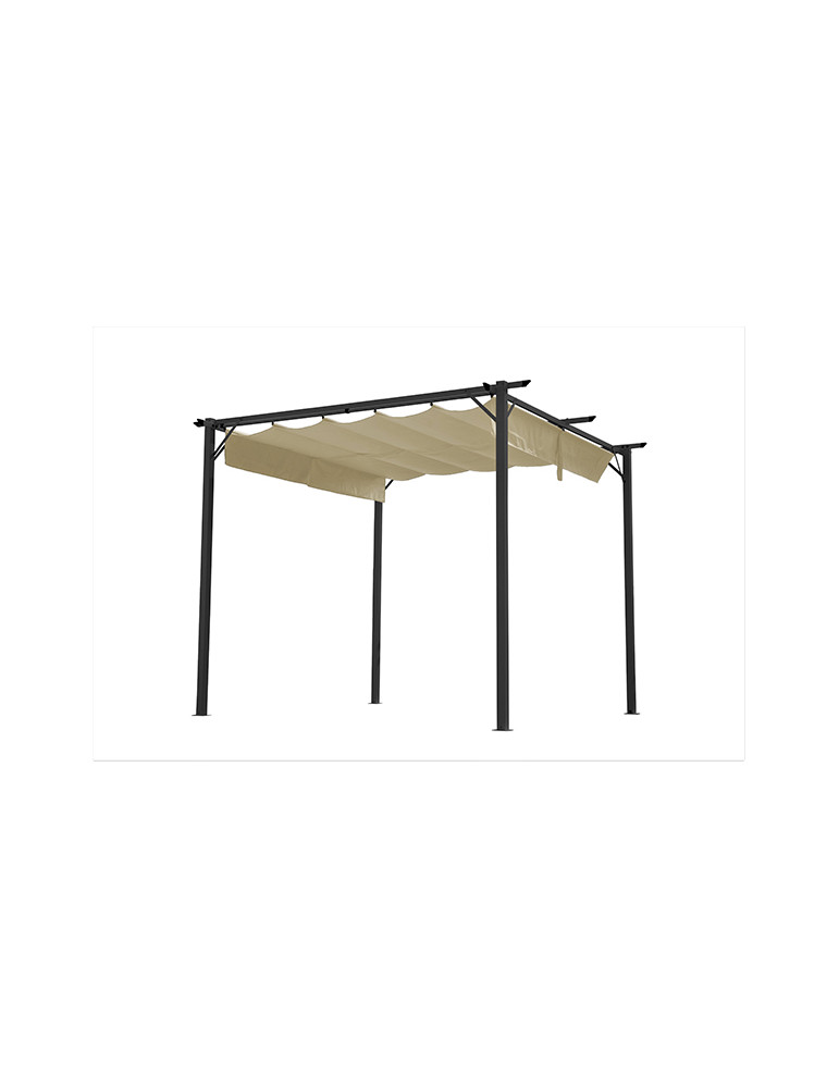 CENADOR ACERO CON TOLDO CORREDERO Lona polyester 300 gr/m2 color arena claro y estructura acero en negro recubierta en pintura en polvo para mayor resistencia. 2,95 X 2,95 X 2,3m