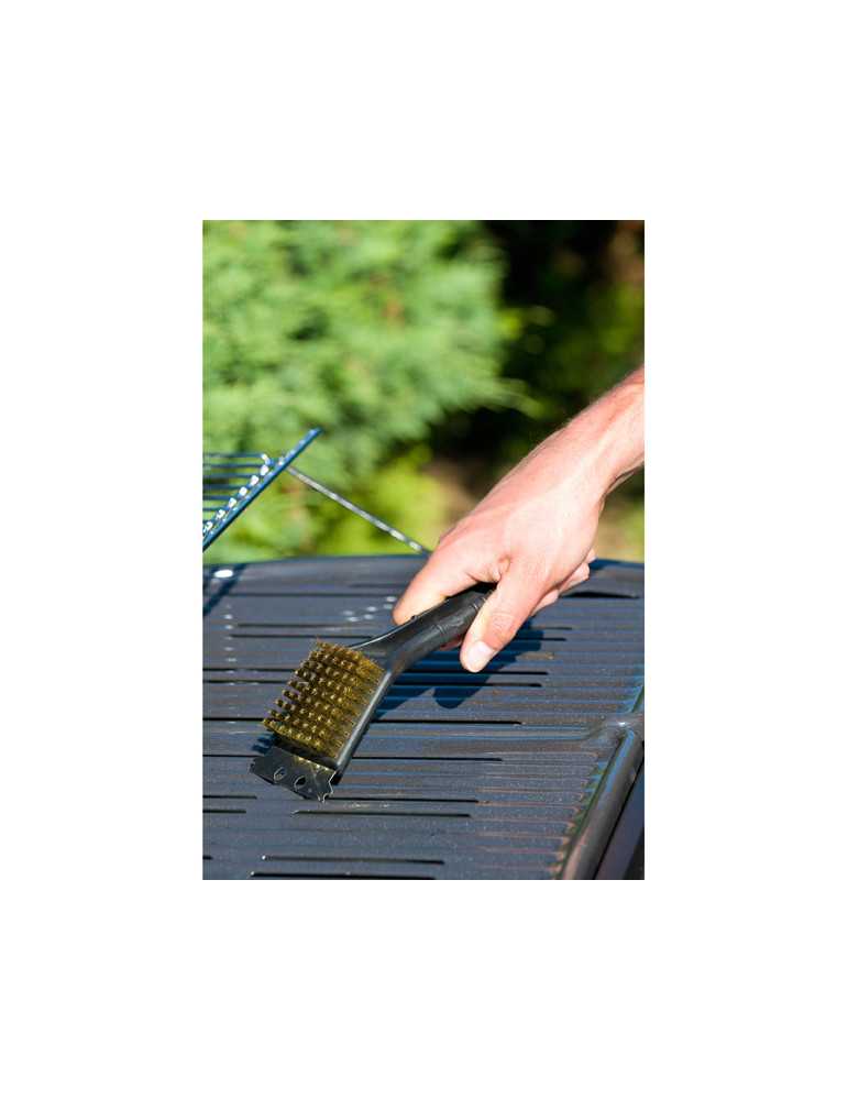 Limpieza muy eficiente entre las rejillas de la parrilla. Púas y espátula metalizadas.