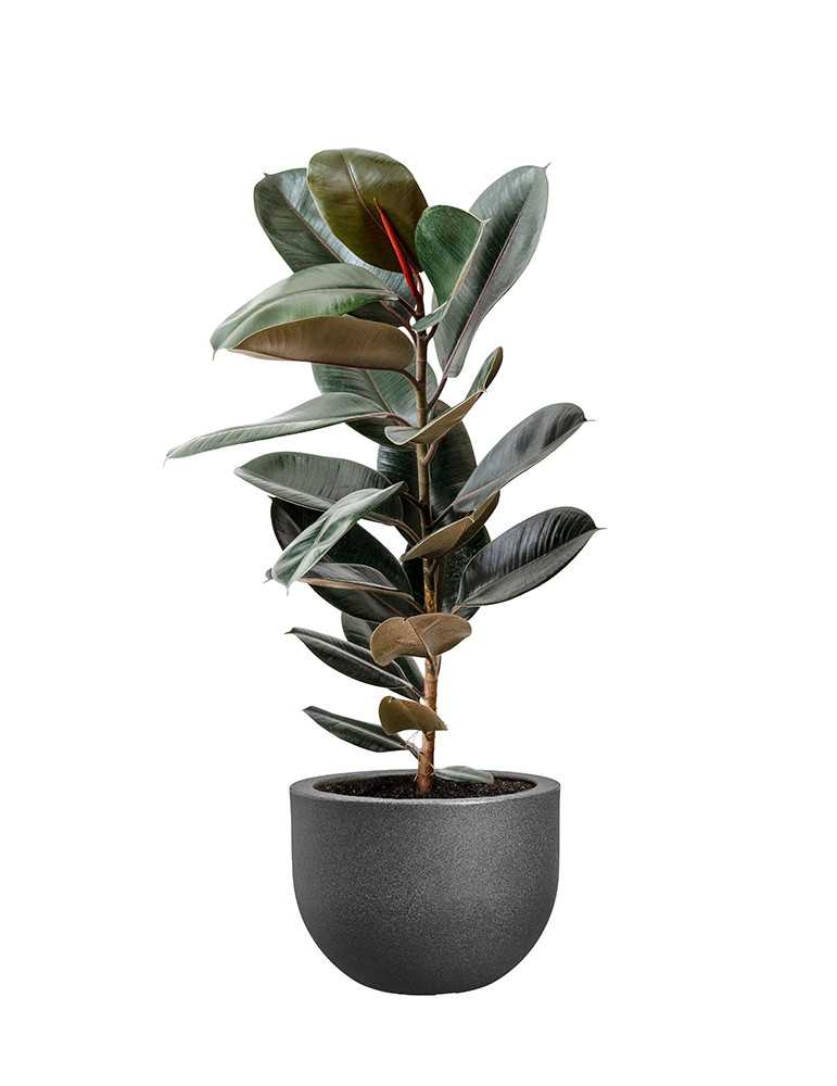 Maceta formato cuenco, acabado piedra; resina, color anthracite. 40 CM