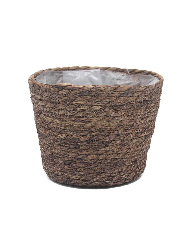 Maceta de fibras naturales con acabado en color marrón oscuro. Perfecto para dar un aspecto natural y decorar cualquier espacio, con aire rústico y moderno a la vez. Medidas: 23 x 18 cm (diámetro x alto).