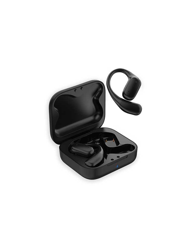 Open Ear (mantienen tus conductos auditivos abiertos). Autonomía 6+18h. Estuche de carga. Control táctil. Llamadas. Asistentes de voz. Color negro. IPX4.