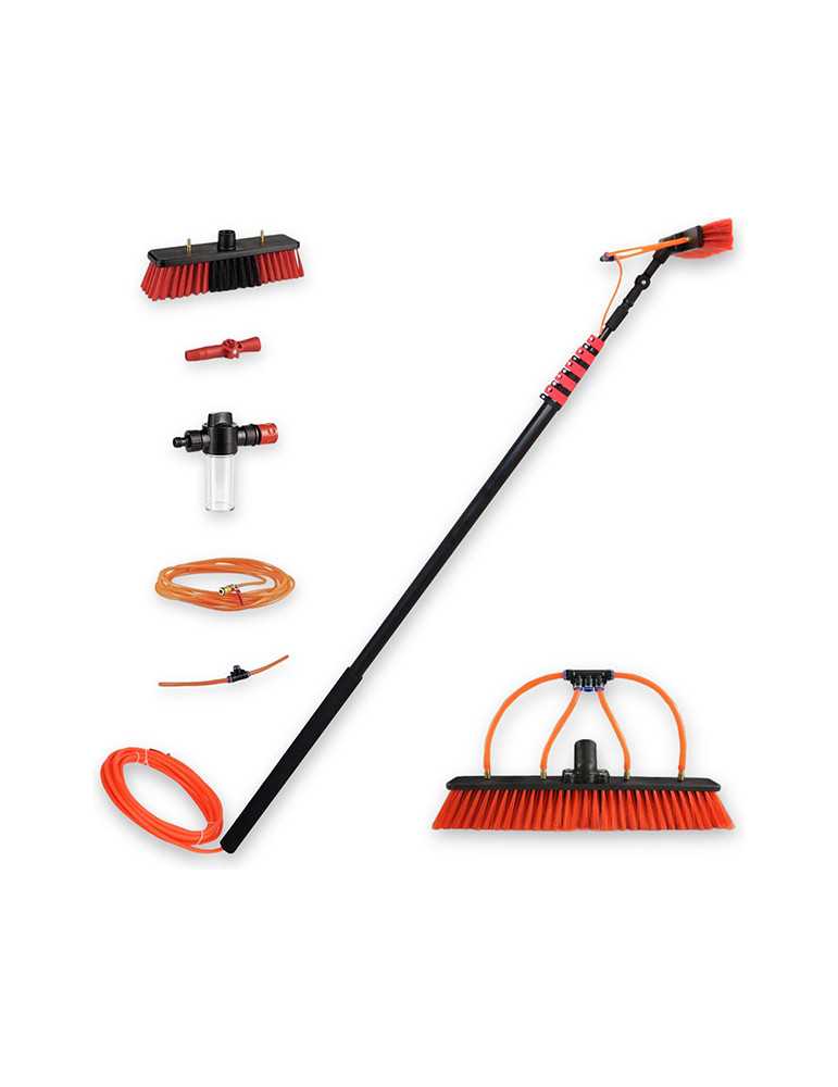 Materiales de alta calidad: Incluye componentes de aluminio, goma y plástico.|Longitud ajustable: Desde 1.3m hasta 7m, ideal para alcanzar áreas difíciles.|Cepillo de limpieza: Con manguera en forma de T para una limpieza efectiva.