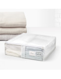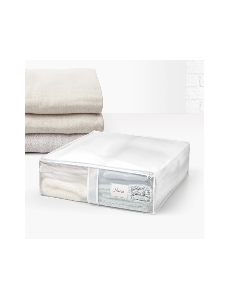 Traslúcida. Protege las prendas del polvo. Con cremallera y ventana transparente. Medidas: 65 x 55 x 20 cm.