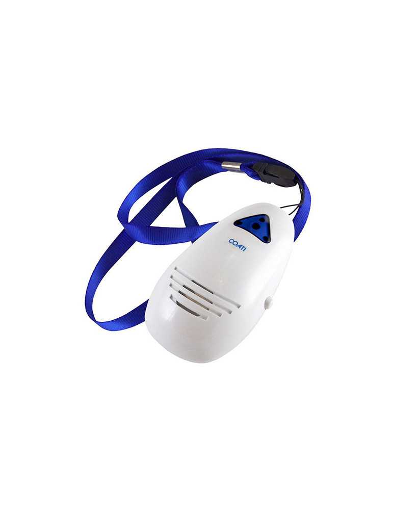 El repele mosquitos portátil de Coati ahuyenta insectos por ultrasonidos sin químicos, olores ni ruidos. Cubre 2 m² y se puede colgar del cuello, mochila o bolso gracias a su cinta ajustable. Compacto, ligero y sin necesidad de enchufe, ideal para ex
