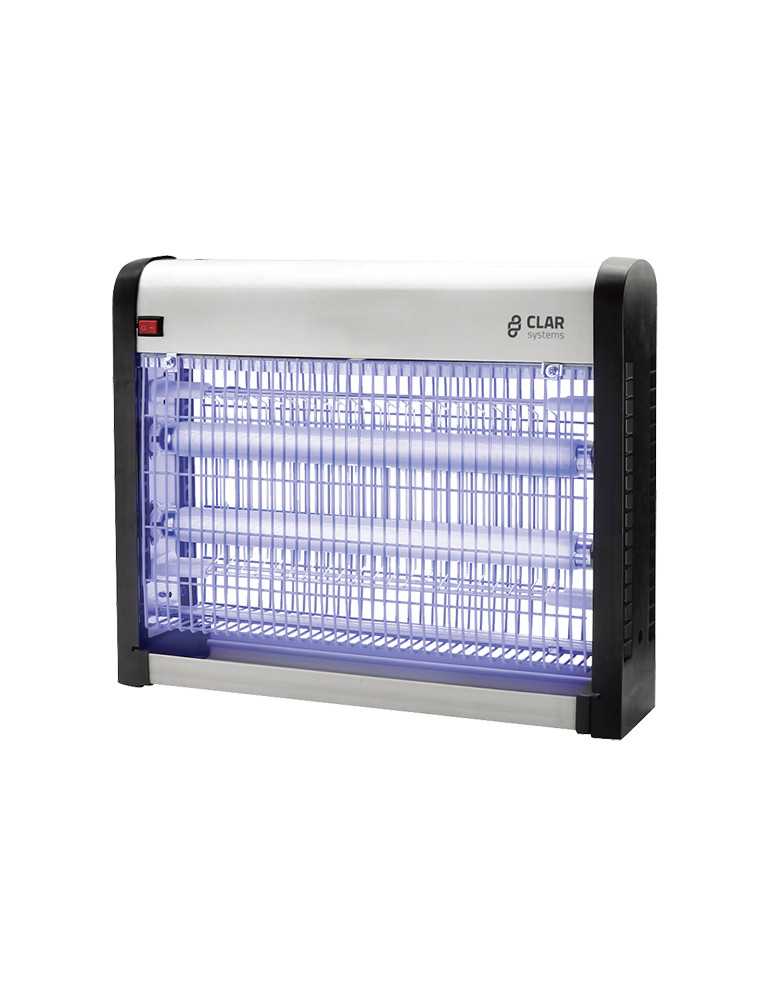 MATAINSECTOS INDUSTRIAL IJR Fabricados en aluminio ABS. Fácil mantenimiento. Rejilla extraíble guiada. Apertura por medio de dos pasadores sin herramientas. Sistema de seguridad patentado. 2 tubos de 11 W. Cobertura 45 m2 (día) y 90 m2 (noche)
