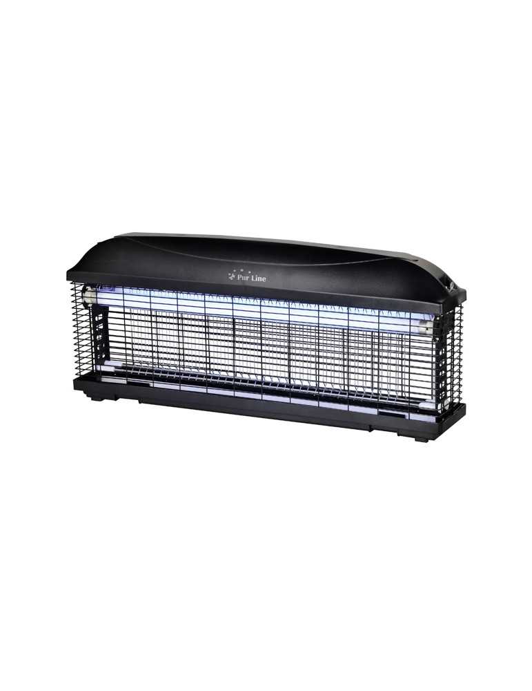 Mata-insectos mural con luz ultravioleta para colocación en pared o techo apto para uso en Exterior Cuerpo fabricado en ABS, resistente y fácil de limpiar Lámpara UV: 2 x 20 W Consumo total: 45 W Tensión: 2.200 V DC Protección IPX4 Área de cobertura: