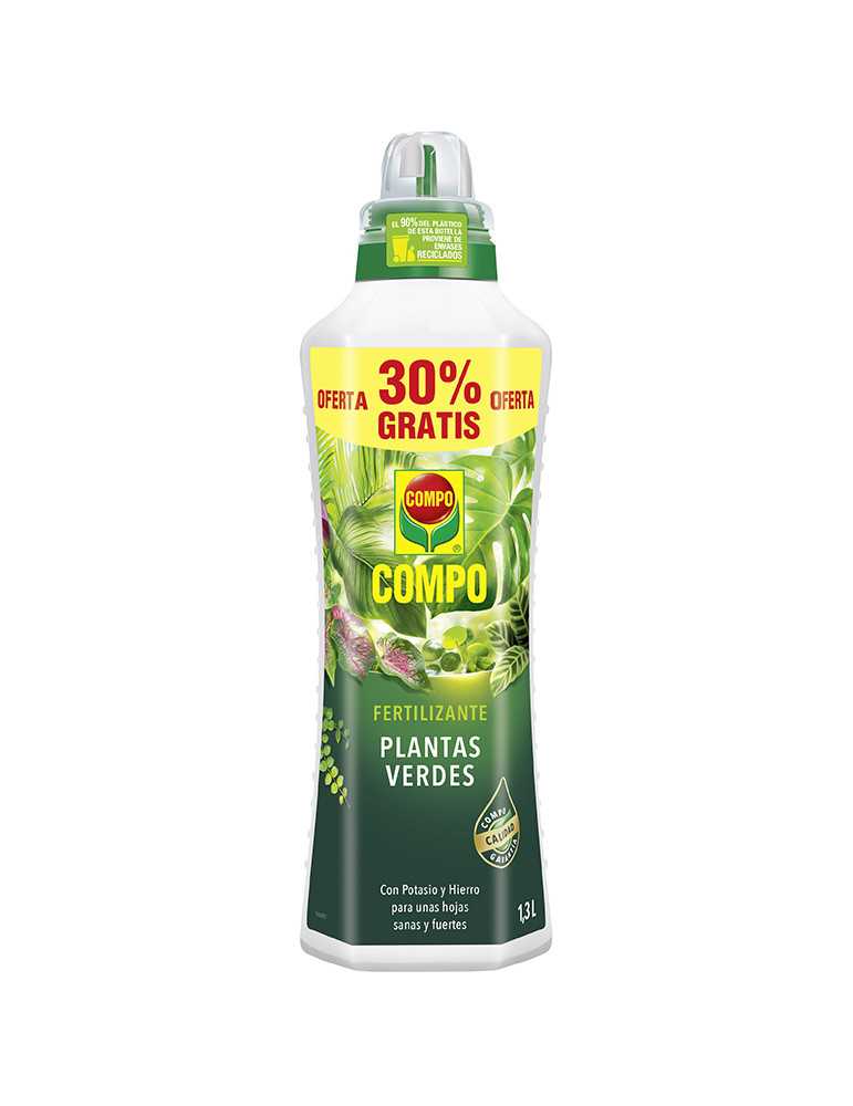 Fertilizante Planta Verde Formulación idónea para plantas de hoja vefde de interior, terraza y balcón. Con potasio y hierro para unas hojas sanas y fuertes. Contiene micronutrientes para un crecimientosano de las plantas. Refuerza la resistencia a plagas y enfermedades. 1300