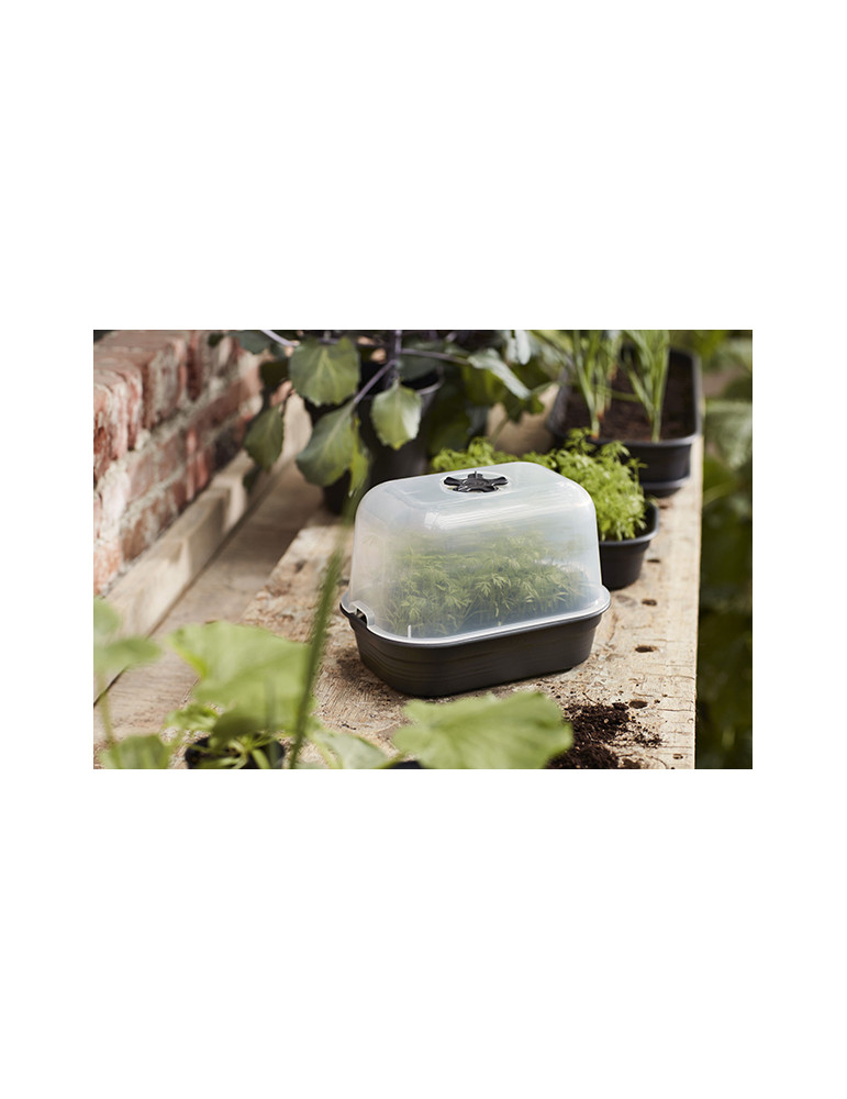 TAPA MINI HUERTO Materiales 100% reciclado. Interior y exterior . Transparente. L 24 x B 17 x H 12 cm