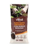 VITHAL SUBSTRATO UNIVERSAL VITHAL Sin turba. • 100% Capacidad de germinación. El Humus de algas Bokashi le confiere unas excelentes características para el óptimo desarrollo de plantas,
