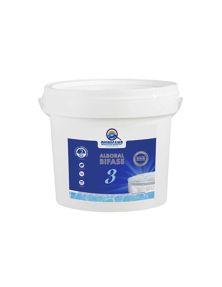 Alboral bifase 3 5 kg Cloro, algicida y floculante. Disolución en 2 fases. Tabletas de 250 g.