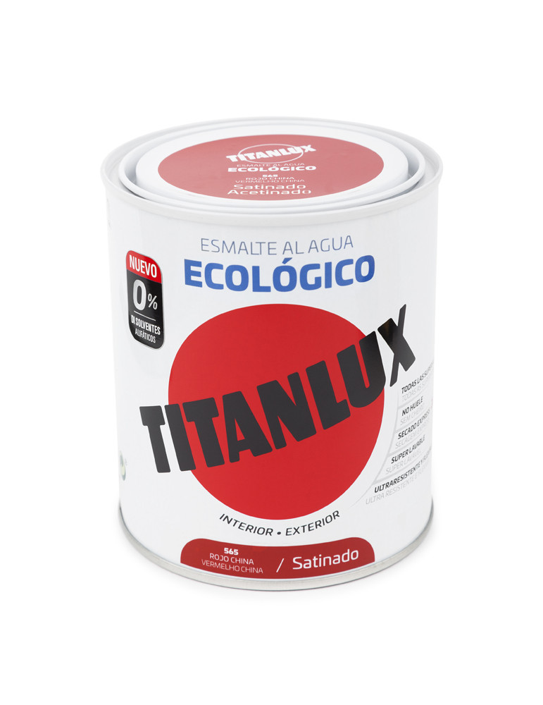 ESMALTE AGUA ECOLOGICO SATINADO TITANLUX Interior-exterior. Todas las superficies. No huele. Secado express. Súper lavable. Ultrarresistente. Consulte carta de colores en su establecimiento. 750 ml.