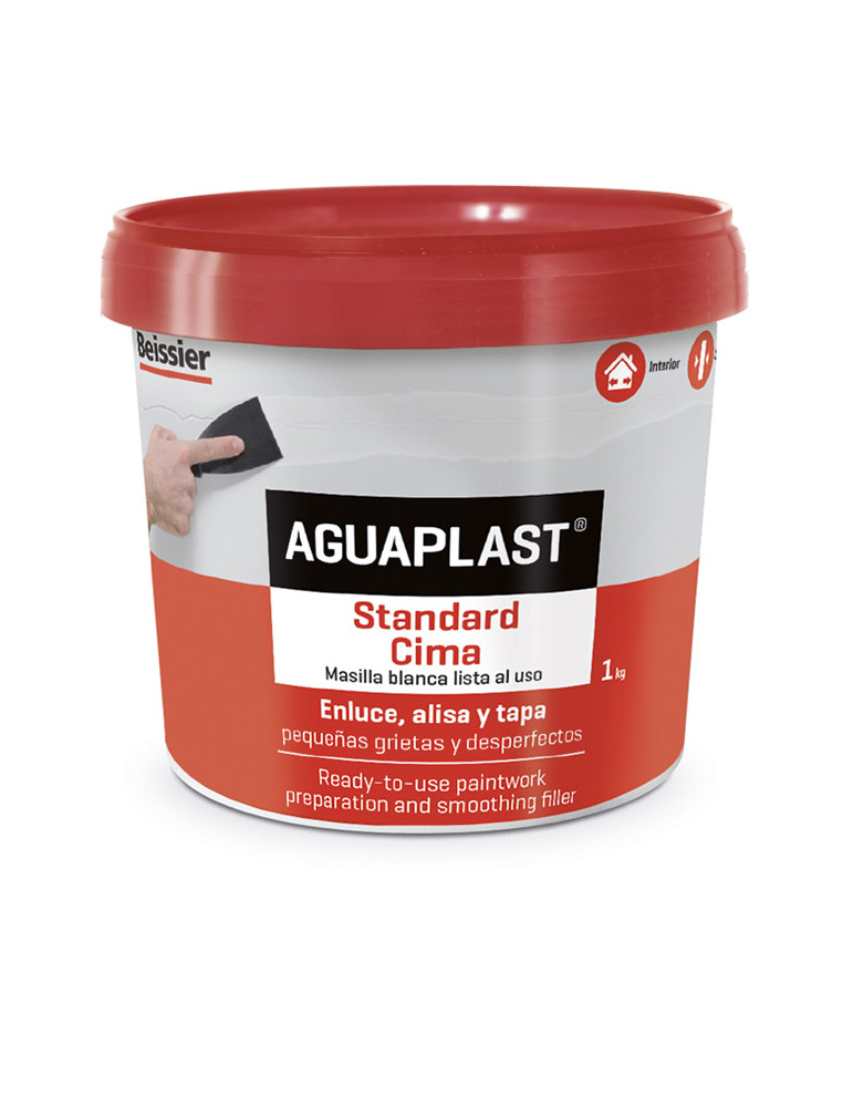 MASILLA BLANCA STANDARD CIMA AGUAPLAST 1 KG. Enluce, alisa y tapa pequeñas grietas y desperfectos. Interior. Repara y alisa paredes después de arrancar papel pintado. Proporciona un acabado de extraordinaria finura y gran calidad, apto para la mayoría de pinturas.