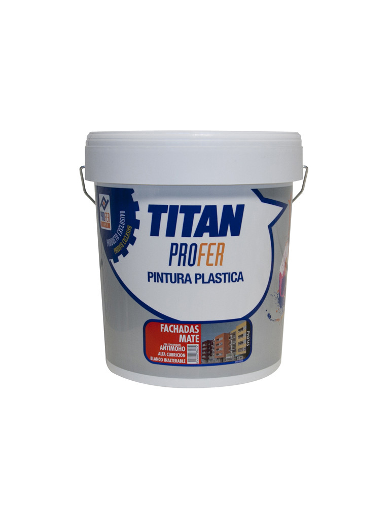 PINTURA PLÁSTICA FACHADAS MATE TITAN PROFER Antimoho, alta cubrición, blanco inalterable. 5 kg.