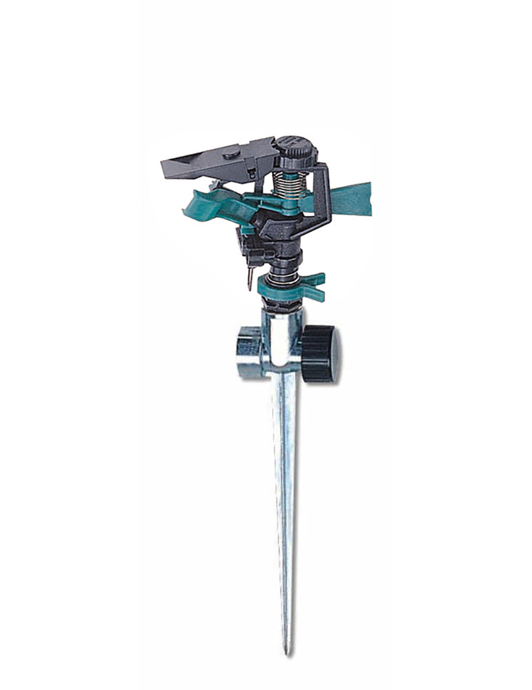 Aspersor suelo Con pincho. 1-6 Bar. Radio de 11 m. Hasta 380 m2 cobertura. Cabeza de plástico.